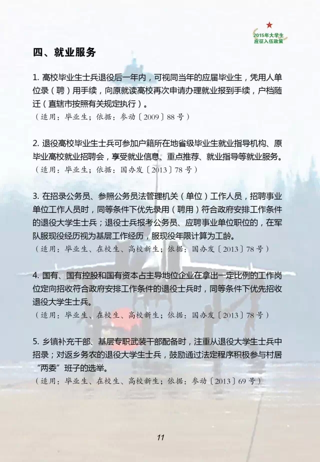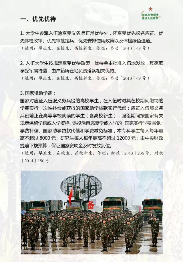 2015年大学生应征入伍政策