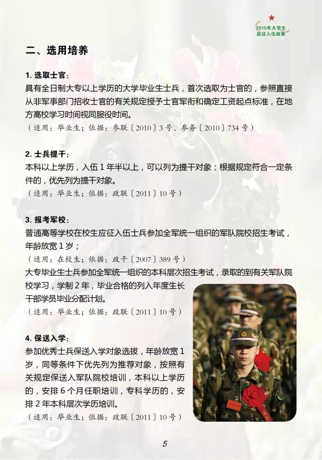 2015年大学生应征入伍政策