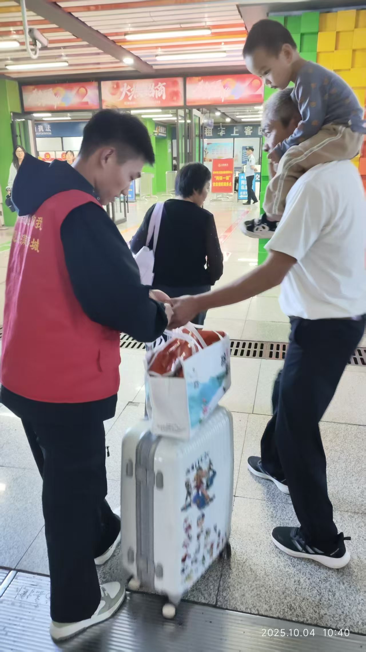 他们曾肩负保家卫国的使命,如今在车站继续践行“为人民服务”的誓言。从清晨第一班列车起,他们的身影便活跃在进站口、安检处和候车大厅。搬运行李、指引方向、解答问询……每一次耐心地帮助,都延续着军人的担当。汗水浸湿的后背、因搬运重物而磨红的手掌,是他们在这个假期收获的别样“勋章”。