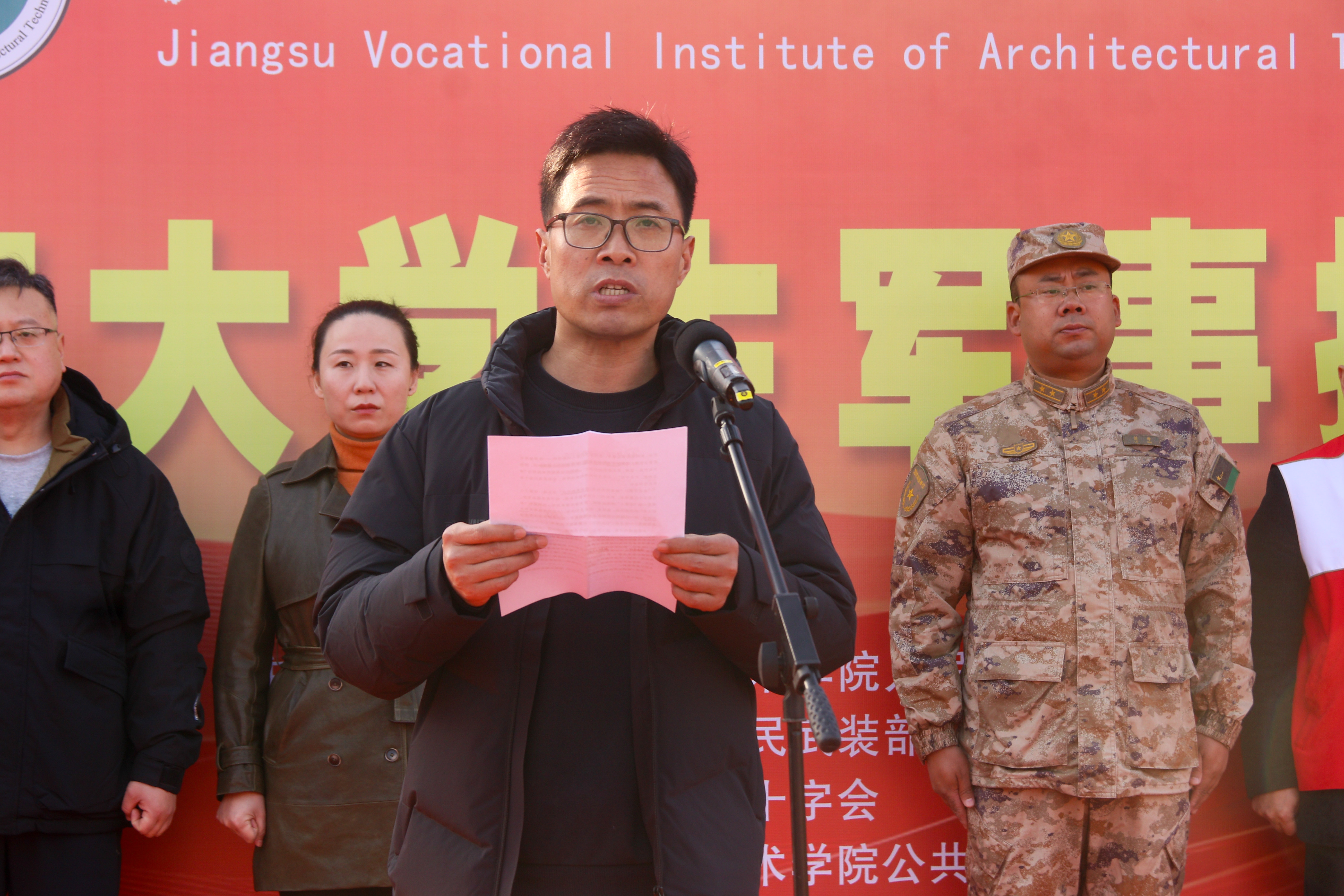 旌旗猎展,迷彩熠熠。11月29日,江苏建院东操场气氛热烈,2025年度大学生军事技能争霸赛在此隆重举行。校人武部领导、泉山区人武部及铜山区红十字会嘉宾、各二级学院党总支副书记出席开幕式,与四百余名参赛学子共同见证这场军事教育与校园文化相融合的盛会。